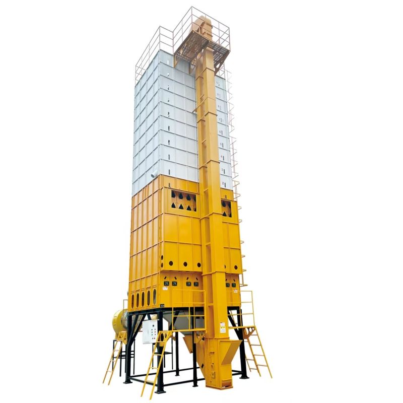 Nadat een enkele partij graan in de droogmachine is gebracht, zorgen de elektrische onderdelen er samen voor dat het graan op een ordelijke manier in de droger circuleert. Vervolgens wordt door de hete luchtoven brandstof verbrand om hete lucht te produceren. Onder invloed van een enkele elektrische ventilator laat de lucht door de gemengde stroomdrooglaag van de luchtleiding gaan, het graan binnendringen en verwarmen, en vocht uit het graan verwijderen door de luchtstroom. Het uitlaatgas met vocht wordt via de aanzuiging van de ventilator via de pijp uit de machine afgevoerd, en het droge graan wordt door de automatische online vochtmeter gedetecteerd om het vooraf ingestelde vochtpunt te bereiken, waarna de machine wordt gestopt en het drogen is voltooid.